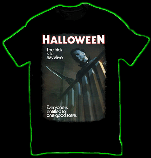 Halloween Michael MyersT-Shirt "One Good Scare" Quantity in Basket: None Code: TS495 Price: $28.00 Shipping Weight: 1.00 pounds Please Choose A Size: SMALL MEDIUM LARGE XL 2XL ADD $2 3XL ADD $3 Quantity: Halloween Michael Myers T-Shirt "One Good Scare" 100% COTTON, BLACK T-SHIRT.